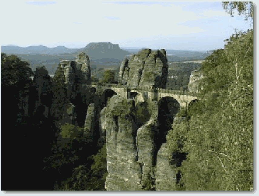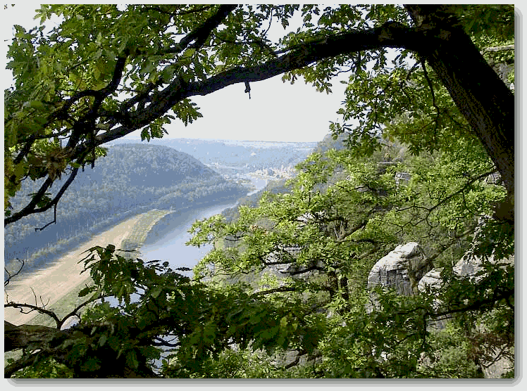 Das Elbsandsteingebirge ist ein kleiner Landstrich, der, an der Elbe gelegen, sich östlich von Dresden bis nach Böhmen hin erstreckt. Eis und Wasser haben vor langer Zeit eigenwillig geformte Felsen hinterlassen. Als die Schweizer Maler Anton Graff und Adrian Zingg im Jahre 1766 diese Landschaft besuchten, sollen sie ihr begeistert den Namen "Sächsische Schweiz" gegeben haben. Seither hat diese Idylle aus Felsen, Wäldern und Wasser viele Dichter, Maler und Musiker zu künstlerischen Werken und Nachbildungen angeregt. Auch als Fassadenwerkstoff für Kirchen, Schlösser oder Burgen wurde der Sandstein weltberühmt und gab den Einheimischen Arbeit und Brot. Heute bietet die Sächsische Schweiz vielen Touristen Erholung und Entspannung und herrliche Naturerlebnisse auf Wanderungen und Klettertouren.Donnerstag, 7. September 2000