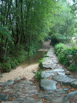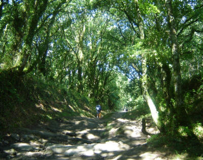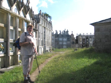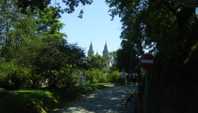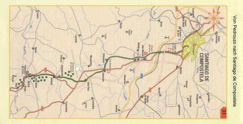 Diese letzte Etappe des Jakobsweges wird auch der Ungeduldige Camino genannt, weil man es kaum erwarten kann, in Santiago anzukommen. In Labacolla, wo sich heute ein Flughafen breit macht, bereiteten sich im Mittelalter die Pilger auf ihr langersehntes Zusammentreffen mit dem Heiligen Jakob vor. Sie entledigten sich all ihrer vermutlich nicht mehr sehr ansehnlichen Kleider und wuschen im Fluss den Schmutz von ihren geplagten Pilgerkörpern ab. Die Zunft der Schneider hatte sicher hier gut zu tun, denn keiner wollte natürlich in abgerissenen Klamotten vor dem Apostel Jakob erscheinen. Wie man in manchen Beschreibungen liest, verdiente auch das waagerechte Gewerbe in den Orten vor Santiago de Compostela nicht schlecht und zog manchem Pilger das letzte bisschen Geld, das ihm noch geblieben war, aus der Tasche. Vielleicht wuschen die Burschen sich auch darum so ausgiebig, schießt es mir misstrauisch durch den Kopf. Mein Misstrauen wächst, als ich lese, dass das galizische Wort „laba“ - wie ich vermutete - „waschen“ heißt, und „colla“ – was ich gar nicht zu vermuten wagte – „Penis“. Aha!!! Möchte man eigentlich in einem Ort wohnen, der so heißt?