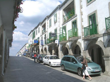 Heute ist Portomarin ein hübsches, aber eher schläfriges Örtchen, obwohl im Hochsommer einige Touristen kommen, von den Pilgern ganz zu schweigen. Der Stausee wird im Sommer von Booten befahren, es gibt Reitställe, und die guten Käse (tetilla - »Brüstchen«) sowie ein für den Ort typisches Backwerk verlocken zum Kaufen und Mitnehmen. Hervorragender Weißwein wird an den Ufern gebaut, Tresterschnaps daraus gebrannt, der bis vor kurzem verbotene Orujo.Die trutzige Kirche, in der wir uns gestern unseren Pilgerstempel geholt haben, steht mitten im irgendwie lieblichen Ortskern. - Nette, Blumen geschmückte Häuschen mit Arkaden vor ordentlichen Ladengeschäften, Bars und Restaurants, das alles gefällig drapiert rund um einen kleinen Dorfplatz mit dem imposanten Namen Plaza Mayor.