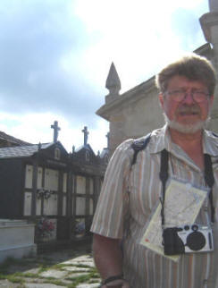 So kurven wir nun mitten durch Santiago zurück auf die Straße, die nach Finisterre führt. Dabei geraten wir - unter die Räuber, hätte ich beinahe gesagt, in den Festtagstrubel der Santiagonesen. Reihen von Festzelten mit gedeckten Tischen, ein Jahrmarkt und Hunderte von chaotisch geparkten PKWs und mitten drin unser Hiram. Aber Günther als erfahrener Truckfahrer kommt wie der Phönix aus der Asche sicher wieder aus dem Getümmel hervor.
