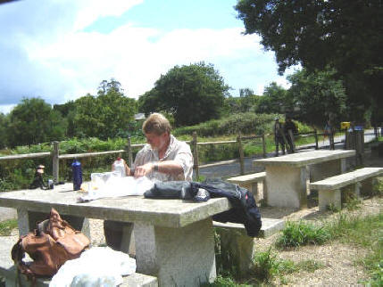 Am Mittag kommt ein netter Wanderer aus Mainz an, der uns erzählt, dass er sozusagen daheim losgepilgert ist und die Wanderung in Etappen gemacht hat. Ich brenne ihm seine Fotos auf CD, weil seine Speicherkarte voll ist. Er will genau wie wir am 24. Juli, dem Vorabend des Jakobsfestes, in Santiago ankommen. Ich bin sicher, da wird in Santiago die Hölle los sein - schöne Beschreibung bezogen auf das Fest eines Heiligen J .