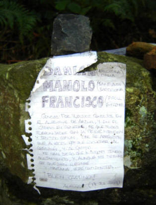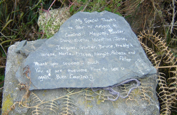 Gedenktafeln für verstorbene Pilger sieht man am Camino häufig. Die Pilger sind meist entweder an Herzversagen oder Schwäche gestorben oder haben schwere Unfälle mit Todesfolge erlitten