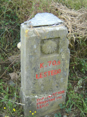 Wir sind etwas enttäuscht, dass sowohl in Gonzar als auch - auf unserem weiteren Weg - in Castromaior, Lameiros und Lestedo die Dorfkirchen verschlossen sind. Es wäre sicher kein Problem, sie für die Pilger während des Tages zu öffnen und einen Stempel dort bereit zu legen; statt dessen muss man sich seine notwendigen Stempel für den Pilgerpass (normalerweise einer täglich, doch von den Pilgern, die nur die letzten 100 Kilometer laufen, werden 2 Nachweise täglich verlangt) in Bars oder Restaurants abholen, was uns überhaupt nicht gefällt. Im übrigen würden wir so gerne in den meist sehr alten Kirchen, die so viel schlichte Gläubigkeit widerspiegeln, einkehren – nur zum kurzen Ausruhen und Besinnen. Aber – wie der Kölner so schön sagt: Et es wie et es, un et kütt wie et kütt.
