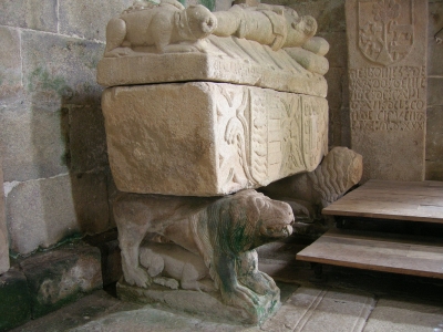 Vilar de Donas - Die Kirche gilt als das wichtigste künstlerische Monument aus der Zeit, in der der Ritterorden des Heiligen Jakob hier großen Einfluss hatte. Das Kloster Vilar de Donas wurde als Nonnenkloster gegründet (daher auch der Name – das galizische Wort „dona“ bedeutet „Nonne“) und ging 1184 an den gerade gegründeten Jakobsorden über, der zu dieser Zeit in der Gegend von Portomarin schon sehr mächtig war. Seit dieser Zeit war es der offizielle Begräbnisort der galizischen Jakobsritter.