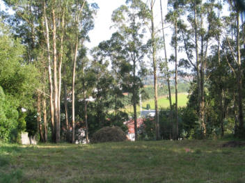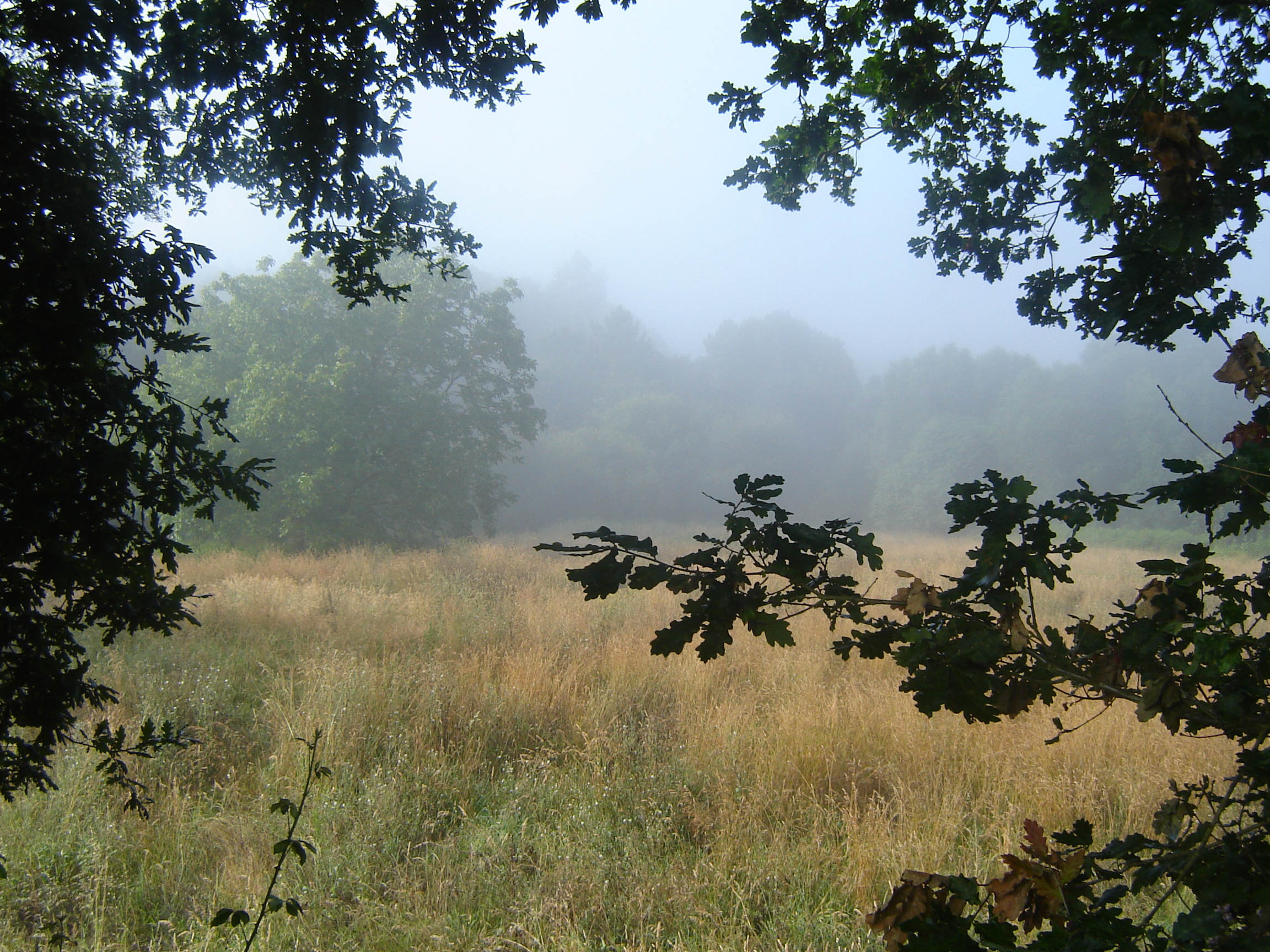 Der Weg durch den lichten Wald ist anfangs etwas steil, aber doch leicht zu bewältigen. Es dauert nicht lange, bis wir auf eine Ebene gelangen. Eine ländliche Gegend mit Wiesen und Feldern, gelegentlich kleinen Gehöften. Es ist still und friedlich.