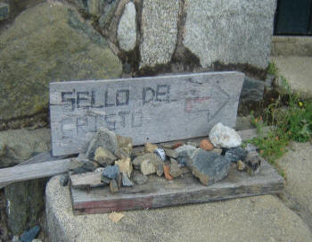 Nach einem nebeligen Tagesbeginn scheint nun strahlend die Sonne. Auf dem Platz, der wirklich liebevoll angelegt ist und ein uriges Restaurant aufweist, campen nur Wanderer - Spanier und eine Gruppe Holländer, die, wenn sie in cumolo sind, ziemlich laut sind. O jeh, wie war das mit dem Finger?