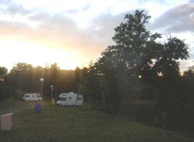 Am Abend sitzen wir fast bis neun Uhr in der Sonne und genießen die Ruhe auf dem Platz. Die italienische Womogruppe, die sich mit ihren Fahrzeugen rund um uns versammelt hat, ist gegen 5 unter lautem Geschnattere abgezogen. Ich liebe euch Italiener wirklich, aber ihr könnt einem schon auf den Geist gehen mit eurem Lärm.