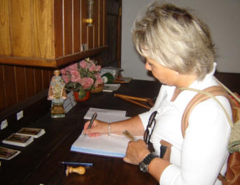 Tief beeindruckt warten wir nach dem Feuerwerk noch mit dem älteren Herrn, bis sich die Menschenmassen etwas verlaufen haben, tauschen Namen und Adressen aus und gehen anschließend noch ein paar Schritte gemeinsam bis zum Priesterseminar, wo er wohnt. Er geht sehr mühsam, und unser Respekt vor seiner Pilgerwanderung wächst noch mehr. Was muss das für eine Strapaze für ihn gewesen sein! Wir verabschieden uns herzlich, und ich verspreche, ihm meine Fotos vom Feuerwerk auf CD zu schicken.