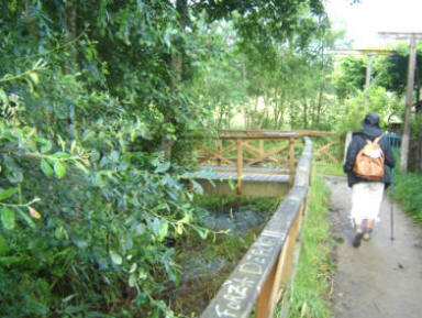 Wir gelangen bald an die romanische Brücke Puente Aspera über den Rio Celeiro, die natürlich fotografiert werden muss. Vor der Brücke passieren wir einige Arbeiter, die rechts und links des Weges das Unkraut und Gebüsch beschneiden. Darüber machen wir uns aber nach dem Überqueren der Brücke keine weiteren Gedanken….
