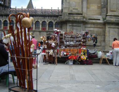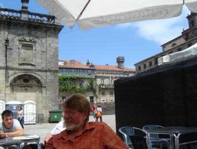 Nachdem wir Geist und Körper ausreichend mit Nahrung versehen haben, sind wir bereit für den „Heimweg“. Unterwegs treffen wir die beiden Berliner, die lange in Endenich gewohnt haben. Ah, da kommt der Mann aus Poppelsdorf, ruft der Mann, als er Günther sieht. Kleiner Plausch unter Pilgern, Abmarsch. Einige Sehenswürdigkeiten liegen allerdings noch an unserem Weg durch die Altstadt von Santiago und haben durchaus unsere Beachtung verdient.