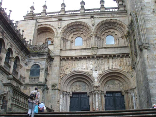 Im Eingang des Westportals (Fachada del Obradoiro) befindet sich das Pórtico de la Gloria des Baumeisters Mateo aus dem Jahr 1188, das als ein architektonisches Meisterwerk gilt.