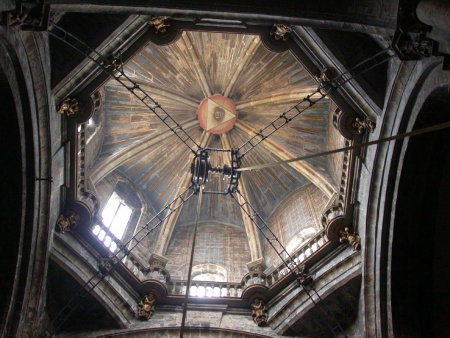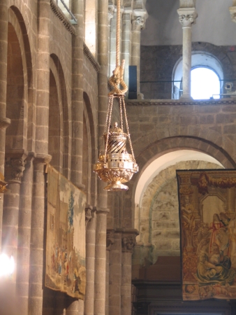 Das einzige wirkliche Highlight ist für uns dann das riesige silberne Weihrauchgefäß - mit dem eindrucksvollen spanischen Namen Botufumeiro, das zum Schlusssegen von 7 Mönchen mittels eines dicken Seils über unseren Köpfen geschwenkt wird. Na, das hat doch was, das ist wieder echt katholisch. Bin schon wieder froh, dass ich nicht evangelisch bin.