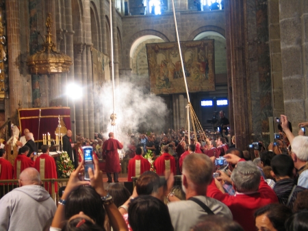 Das Botafumeiro ist ein etwa 1,60 m großes Weihrauchfass, das an einem etwa 30 m langen Seil von der Decke hängt und gelegentlich nach dem Hochamt von mindestens acht Männern in Bewegung gesetzt und bis hoch unter die Decke geschwungen wird. Es wird vermutet, dass dieses besonders große Weihrauchgefäß dazu diente, die Ausdünstungen der Pilger zu übertünchen, die nach Abschluss ihrer Wanderung auf dem Jakobsweg eine ganze Nacht wachend und betend in der Kathedrale verbrachten.