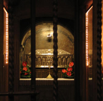 Den Altar schmückt ein vergoldeter Baldachin. Darunter befindet sich die Gruft mit einem silbernen Schrein, der die Reliquien enthält, unter anderem ein auf das Jahr 874 datiertes goldenes Kruzifix, das einen Splitter des Kreuzes Christi beinhalten soll.