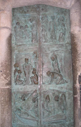 links: Portico de la Gloria rechts: Puerta Santa von außen
