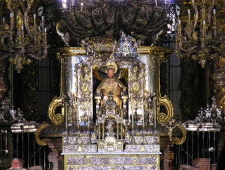 Nach der Messe ziehen wir gemeinsam mit vielen anderen Gläubigen oder auch nur Interessierten vorüber an dem Schrein, in dem die Gebeine des Apostels Jakobus liegen sollen. Den Mantel der Jakobus-Figur über dem Altar wollen wir aber nicht berühren, obwohl die Schlange der hier anstehenden Menschen unglaublich lang ist, was für die Beliebtheit dieser Aktion spricht. Aber - wir glauben nun mal nicht an die wundersame Wirksamkeit solcher Riten, also lassen wir’s auch.