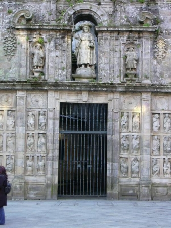 das als einziges Portal in der ursprünglichen Gestalt erhalten bliebDer Platz vor der Kathedrale, die Plaza de Obradoiro gehört zu den beliebtesten spanischen Plätzen überhaupt. Auf diesem riesigen Platz befindet sich der Convento de San Francisco aus dem 13. Jahrhundert, der von Franz von Assisi während seiner Pilgerfahrt nach Santiago de Compostela gegründet wurde.
