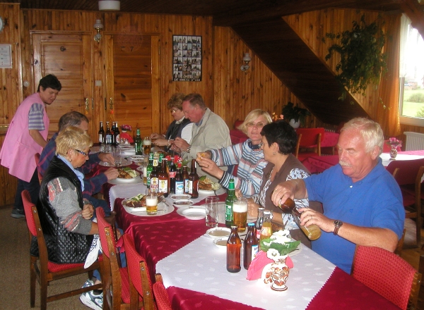 Am Abend treffen wir uns alle im Gastraum des Campingplatzes. Wir haben ein masurisches Essen bestellt: Fisch aus masurischen Gewässern und Bigos (Sauerkraut auf polnische Art).