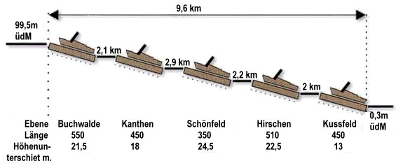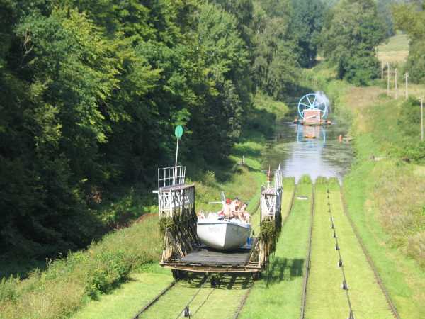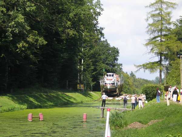 Die Hauptattraktion ist das in der Welt einzige funktionierende Rampensystem. Die einzelnen Rampen bringen die Schiffe auf dem Lande je nach Fahrtrichtung nach oben oder unten. Die Wasserspiegel-Differenz ändert sich auf einer Länge von 9,6 km um über 100 m, die das Schiff mit Hilfe der fünf mit Wasser angetriebenen Rampen überwindet.