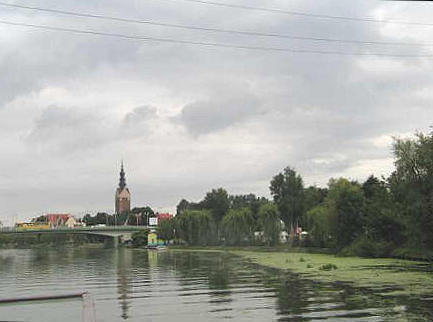 Die Stadt Elbing kommt in Sicht (rechts unser Campingplatz).