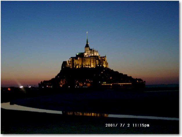 Sowohl im Wohnmobilmagazin Promobil als auch im Reiseführer Normandie der Womo-Reihe wird eine Ton- und Lichtschau beschrieben, die, wie es dort heißt, ab 12. Juni - September jeden Abend ab 22 Uhr auf einer Strecke von 1 km dort zu erleben ist. Erwartungsfroh machen wir uns darum um 21.45 Uhr auf den Weg, um uns diese Schau nicht entgehen zu lassen. Pünktlich um 22 Uhr laufen wir durch die steilen, engen Gässchen des Klosterberges, aber es passiert nichts. Schließlich entdecken wir ein großes Poster, das auf diese Schau hinweist. Und - c'est la vie - jetzt beginnt das Spektakel erst ab Juli und dann auch zu einer anderen Uhrzeit, nämlich um 18 Uhr.