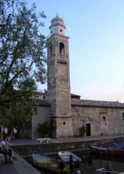 Die Kirche San Nicolo wurde im 12. Jh. von den Einwohnern von Lazise über dem Hafen erbaut und Sankt Nikolaus von Bari, der im Mittelalter als Patron der Schulen und der Seefahrer verehrt wurde, geweiht. Im Laufe der Zeit wurde die Kirche als Lager, Kaserne, Wohnstätte und Lichtspieltheater benutzt. Seit 1953 wird sie wieder als Kultstätte verwendet. Die Kirche ist auch eine Gedenkstätte für die Kriegsgefallenen  und  trägt auf der äußeren Nordwand eine Freske der Madonna mit Kind auf dem Thron aus dem 14. Jahrhundert. Im Park der Villa Bernini kann man auch eine Burg besichtigen, was wir jedoch heute Abend eigentlich nicht mehr vorhaben.