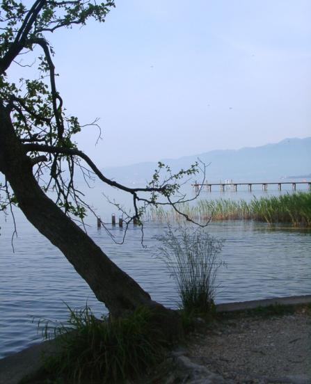 Am Morgen laufen Ulla und ich mit Pepe auf der wunderschön angelegten Seepromenade von Lazise (Foto links) am Seeufer entlang. Der See schimmert silbern im Licht der Morgensonne, die Berge am gegenüberliegenden Ufer des Sees, der an dieser Stelle sehr breit ist, sind in pastelliges Blau getaucht. Ein wunderschöner Morgenspaziergang!