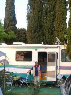 Nach dem Einrangieren und den notwendigen technischen Aktionen sitzen wir mit Ulla und Hardy in der warmen Sonne Italiens, trinken uns eins und genießen den Urlaubsanfang. Ulla hat lecker gekocht, so dass nicht nur die Kehle, sondern auch der Magen zu seinem Recht kommt.
