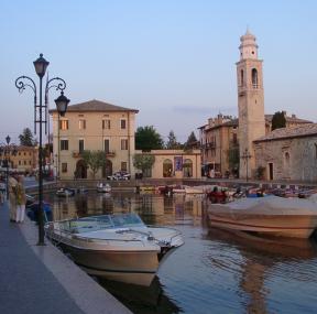 Am Abend bummeln wir durch die malerische Altstadt von Lazise, die knapp 3 Minuten vom Campingplatz entfernt liegt. Romantische lauschige Gässchen und Plätze, blumengeschmückte Häuser, ein kleiner Hafen und eine Kirche aus dem 12. Jahrhundert mit schönen alten Fresken, gemütliche Lokale mit guter Küche, schöne Boutiquen mit ausgefallenen Klamöttchen, das alles und sicher noch viel mehr hat Lazise zu bieten. Wir sind rundum begeistert.