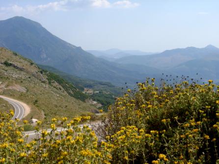 Die Straße schlängelt sich durch eine Gebirgswelt, die uns erahnen lässt, welche Naturschönheiten uns noch erwarten. Es geht steil und kurvenreich bergan,  imposante Blicke hinunter in das unter uns liegende Land wechseln sich ab mit Ausblicken auf die vor uns liegenden Berge des Pindos-Gebirges, das die Landschaften Thessalien und Epirus trennt. Der Pindos erstreckt sich von der Grenze Albaniens aus etwa 160 Kilometer nach Süden und erreicht eine Höhe von 2 480 Metern. Die Pindos-Gebirgskette zählt zu den wundervollsten aber dennoch weithin unbekannten Bergregionen Europas. Sie umarmt zwei Nationalparks, den von der Schlucht Vikos-Aoos und den Naturpark von Walia Kalda. Die einzige bedeutende Straße in ostwestlicher Richtung führt über den Katarapass, den auch wir auf unserer Fahrt zur Chalkidike überqueren müssen.