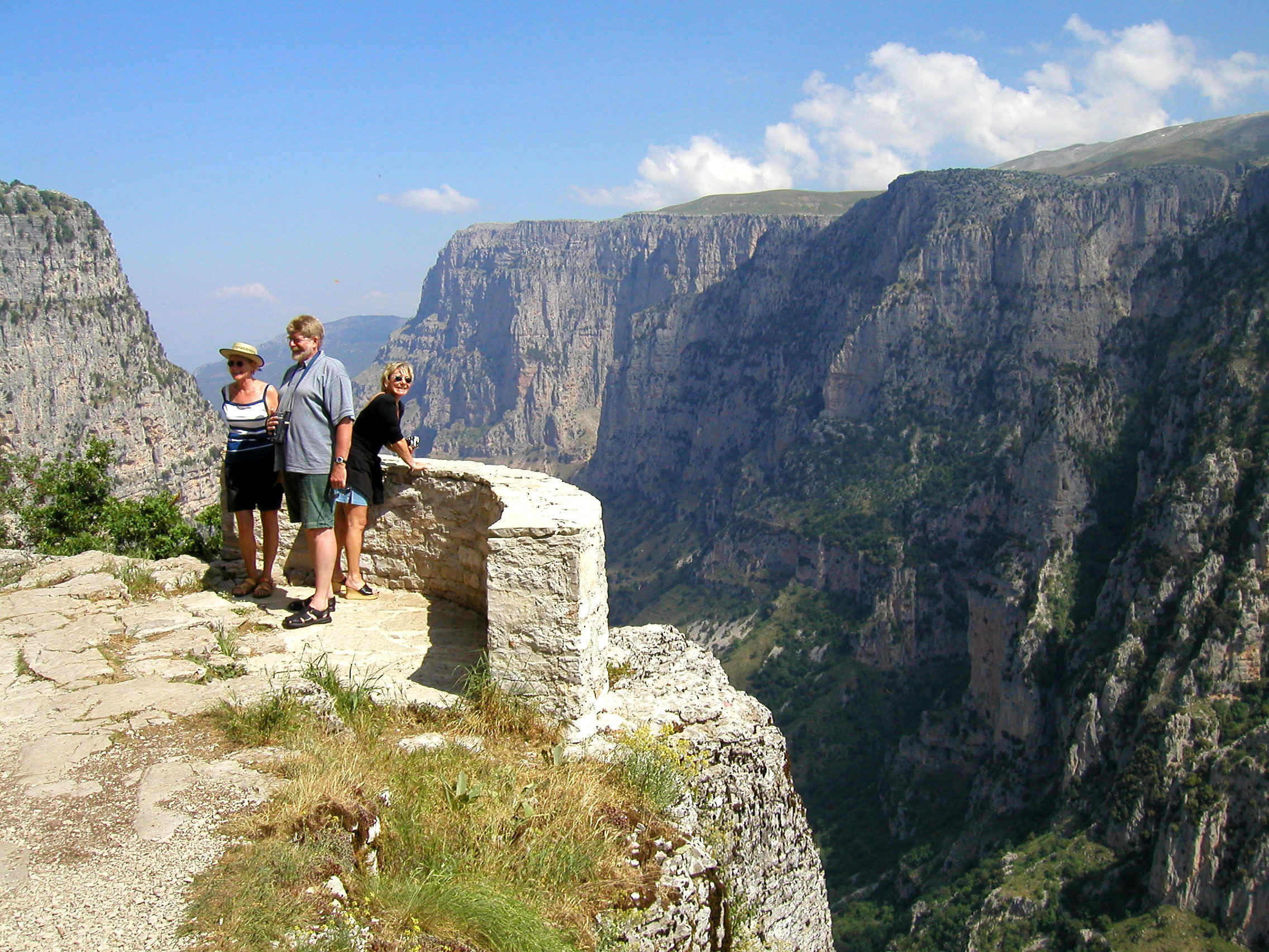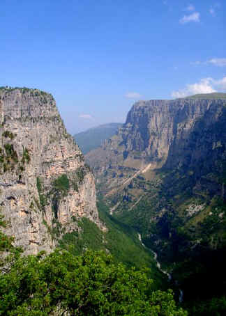 Hinter Asfáka müssen wir von der gut befahrbaren E 90 rechts abbiegen Richtung Monodendri. Die Straße windet sich steil den Berg hinauf. Von weitem sehen wir bereits die schroff abfallenden Wände der Vikos-Schlucht, an deren Rand  Monodendri liegt. Der "Grand Canyon" Griechenlands - die über zehn Kilometer lange Vikos-Schlucht, durchbricht die zackigen Gebirgsriegel aus Kalk und Dolomit.
