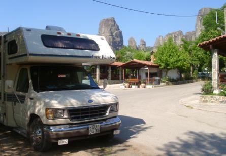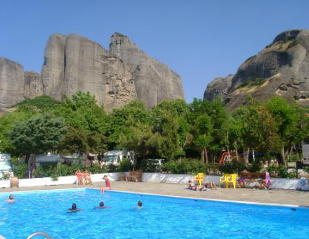 Am Nachmittag kommen wir in Kastraki, dem kleinen Dörfchen unterhalb der Meteora-Felsen, an. Der Campingplatz, den wir auf Hardys Empfehlung ausgesucht haben (er war schon mal hier), heißt Camping Vrachos  und ist einer von mehreren Plätzen in dieser Gegend. Leider ist er ziemlich voll –  mit Recht,  denn er ist ein wirklich schöner Platz – mit Pool, schicken, vor allem sauberen, Sanitäranlagen und herrlichem Panorama.