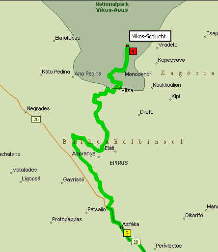 Route 3: Igomenitsa - Vikos-Schlucht (Monodendri)