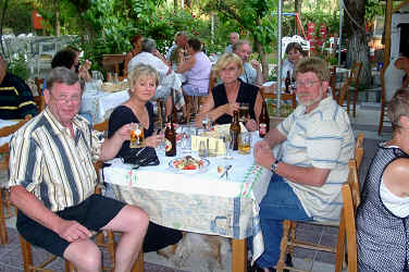 Am Abend statten wir vier der urigen Camping -Taverne einen Besuch ab und schwelgen zum ersten Mal in diesem Urlaub in griechischen Gaumengenüssen.