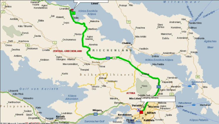 Der nächste Morgen steht schon ganz im Zeichen des Abschiednehmens. Wir wollen nicht so spät losfahren, da wir heute Nachmittag bereits unseren Sightseeing-Bummel in Athen eingeplant haben. Gegen 10 fahren wir unter heftigem Winken in Arkitsa los. Athena hat versprochen, demnächst einmal nach Deutschland zu kommen, aber so recht glauben können wir es nicht. Wann werden wir uns wohl wiedersehen?