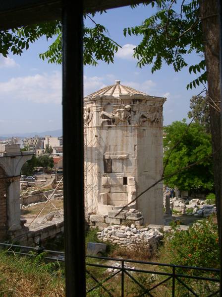 Nördlich der Akropolis, in der Altstadt (Pláka) steht ganz unauffällig der Turm der Winde, ein achteckiger, 12 m hoher Bau, der nach 8 Himmelsrichtungen die entsprechenden Winde zeigt.