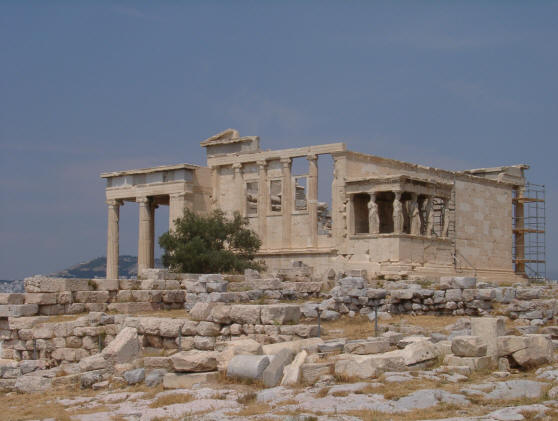An der Stelle, wo der griechischen Sage nach Athene und Poseidon ihren Kampf um die Vorherrschaft in Attika austrugen, wurde bis 406 aus Marmor Erechtheion erbaut. In ihm waren mehrere Kultstätten untergebracht, und entsprechend ungewöhnlich ist der Grundriss dieses Baus.