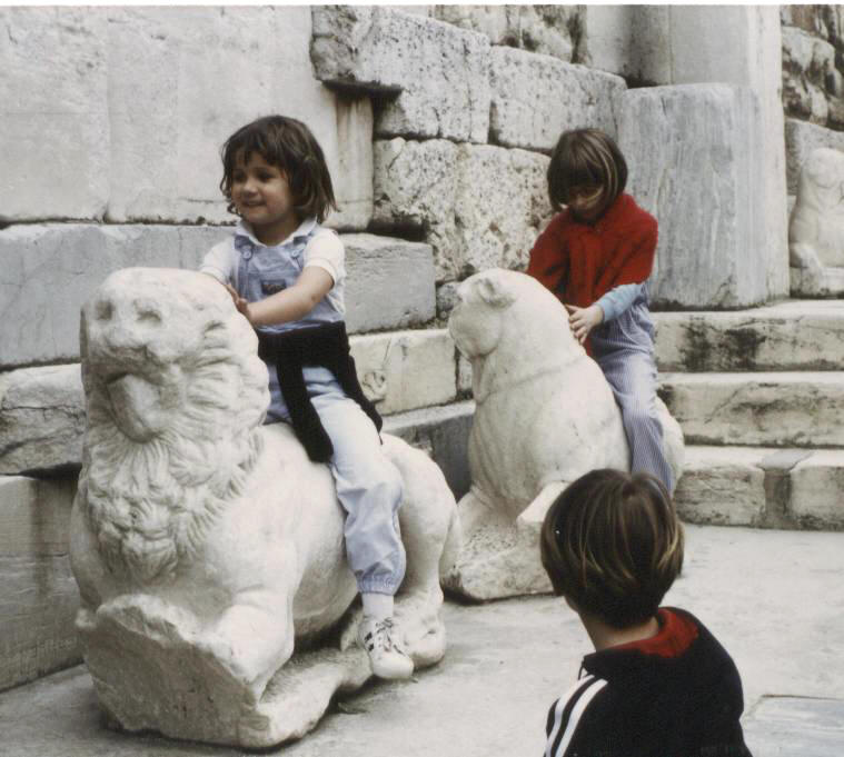 Unser Gang über die Akropolis ist geprägt von vielen schönen, aber auch wehmütigen Erinnerungen: Hier hatten unsere 4 Kinder 1981 noch kein größeres Interesse, als zwischen den antiken Steinen Blümchen zu pflücken oder auf steinernen Löwen zu reiten. Vier Jahre später war dann bei Fredi schon das Interesse an den alten Griechen geweckt, und er ging mit offenen Augen herum und erlebte Geschichte live „das hab ich in unserem Geschichtsbuch gesehen...“