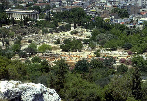 Westlich des Turms der Winde schließt sich die Agora an, der antike Marktplatz Athens, Zentrum des öffentlichen und geschäftlichen Lebens der Athener mit den entsprechenden Gebäuden, unter diesen die Stoa des Attalos, von König Attalos von Pergamon (159-138 v. Chr.) erbaut, die heute, nach ihrer Wiederherstellung, als Museum genutzt wird. Sie enthält interessante Funde aus dem Bereich der Agora.