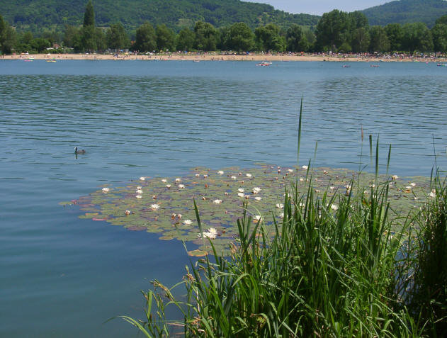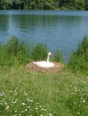 Unser Badeplätzchen ist ein Traum. Neben uns ein Schwanenpaar, das Weibchen sitzt auf dem Nest und brütet die Eier. Seerosen auf dem See und blitzendes Wasser. Nachdem wir unser Vanilleeis mit Erdbeeren verspeist und uns gesonnt haben, genießen wir das Schwimmen im Wiesensee. Das Wasser ist klar und sehr warm. Es ist ein wahrer Genuss.