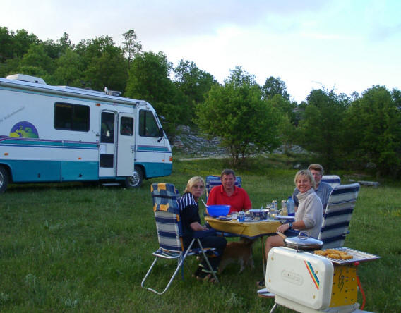 Die Nacht war ruhig, und wir haben prima geschlafen. Unser Vorhaben, draußen vor den beiden Bullaugen am Mü-Schnei-Womo zu frühstücken, setzen wir selbstverständlich am Morgen um.
