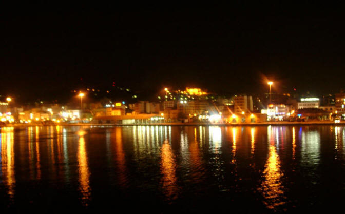 Mit leichter Verspätung (es ist kurz nach 23 Uhr) legt die Fähre dann endlich ab , und die Lichter von Patras verschwinden langsam in der Ferne.