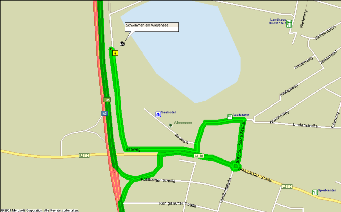 Kurz entschlossen fahren wir von der A5 ab. Bei der zweiten Tankstelle haben wir Glück: Wir finden Manhattan Eis, Geschmacksrichtung Vanille. Na bitte! So, jetzt auf zum See! Auf dem offiziellen Parkplatz beim Strandbad ist die Hölle los, hier finden wir keinen Platz für unseren Kleinen. Also fahren wir (ist das toll mit meinem Routenplaner und dem GPS-Empfänger) einfach ein Stück um den See herum. Bei einer Gokart-Halle können wir schließlich parken.