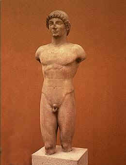 den archaischen Skulpturentypus des Kouros, der freiplastisch